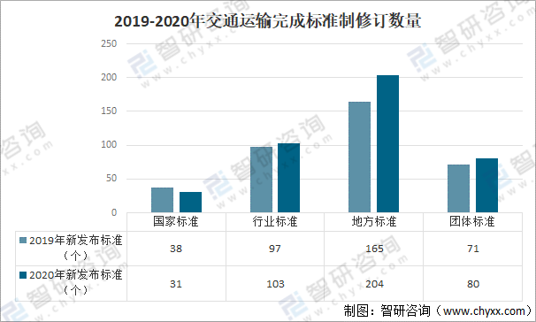 2019-2020年交通运输完成标准制修订数量