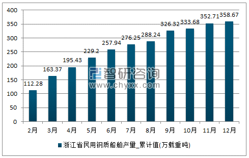 数据显示:2017年12月浙江省民用钢质船舶产量为10.87(万载重吨),2017年1-12月止累计浙江省民用钢质船舶产量为358.67(万载重吨)。