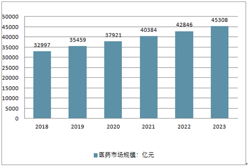 受益于我国居民健康意识的加强、人口老龄化趋势明显以及医药科技领域的创新和发展,未来几年医药行业有望保持持续的增长。预计到2023年,我国医药市场规模将超过45000亿元。2019-2025年中国医药行业发展前景预测(单位:亿元)