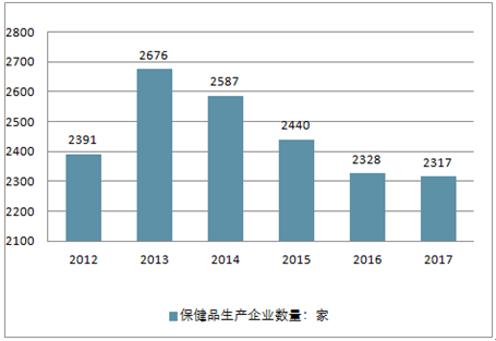 图表:2016-2018年中国保健品企业数量增长趋势图