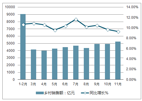 图表:2018年中国农村网络零售行业利润增长趋势图