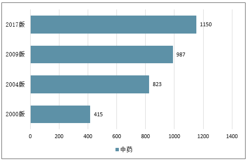 2000-2017 年四版医保目录中西药品种数量(药品)