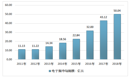 2011-2018年我国电子烟市场规模走势图
