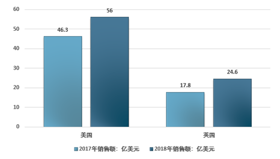 2017-2018年主要国家电子烟销售额