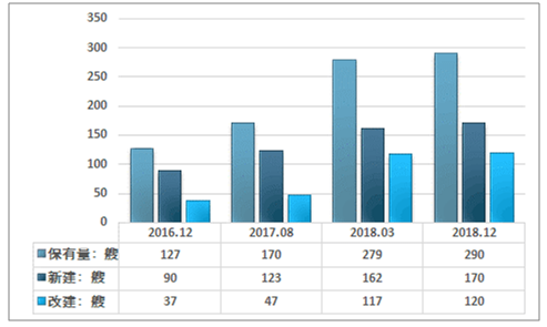 截至2018年底我国已建和在建船舶加注站数量及运营数量