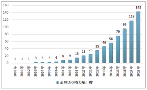2005年以来,全球LNG动力船数量稳步增长,从2005年的3艘增至2018年的143艘。