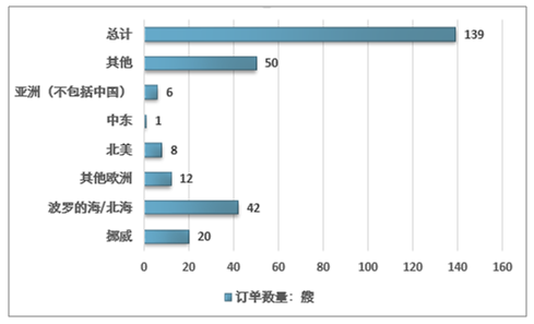 全球主要国家或地区LNG动力船数量分析(单位:艘)
