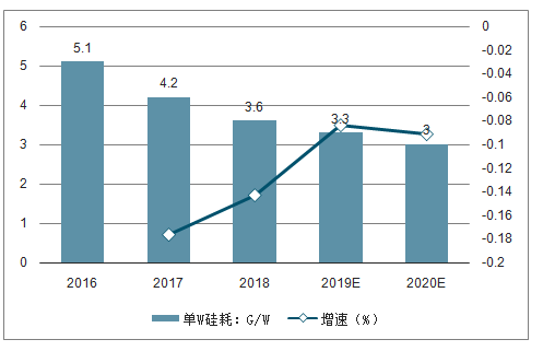 单晶比例上升,电池效率提升,以及切割线损降低(未来薄片化趋势)等因素联合作用,单W硅耗持续降低,单晶PERC电池硅耗今年已经降至3.3g/W以下。基于单W硅耗趋势判断,18-20年多晶硅全球产量预计分别为34.2、39.6、45.0万吨。