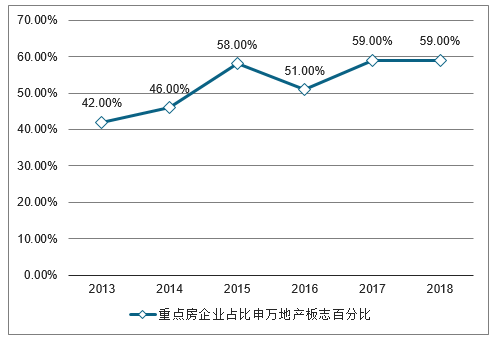 截止2019年5月13日,本次统计的31家重点房企其市值总和为14418亿元,较2017年底增长7%,合计市值在申万房地产板块占比59%,占比保持稳定。分类来看,5家一线房企在32家重点房企中市值占比达53%,仅万科A一家市值占比就达19%;从趋势来看,五类房企在申万房地产板块总市值中占比保持稳定。