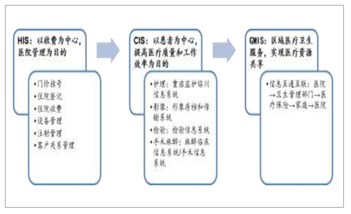 根据国际统一的医疗系统信息化水平划分,医疗信息化发展主要涵盖三个阶段:医院管理信息化(HIS)阶段、医院临床医疗管理信息化(CIS)阶段和区域医疗卫生服务(GMIS)阶段。