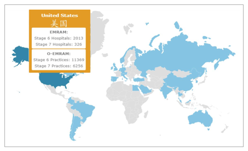 美国是全球医疗信息化建设的领头羊。美国获得电子病历(EMRAM)六级认证的医院已有2013家,获得电子病历(EMRAM)七级认证的医院已有326家;获得电子病历(O-EMRAM)六级认证的医院已有11369家,获得电子病历(O-EMRAM)七级认证的医院已有6256家,信息化程度远超世界其他国家。毫无疑问,美国是全球医疗信息化建设的领头羊。