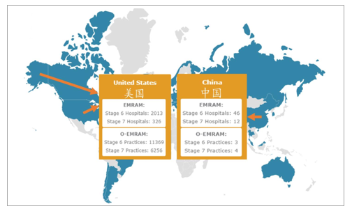 中美HIMSSAnalytics电子病历6级以上医疗机构数量对比