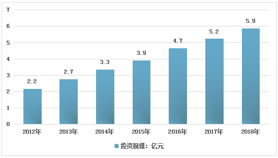 随着商用洗碗机应用领域的不断增加,近年来我国商用洗碗机行业投资规模不断上涨。数据显示,2017年行业投资规模为5.2亿元,2018年达到5.9亿元,行业近几年投资规模走势如下图所示: