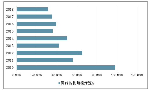 当前网民规模8.3亿,网络购物人群6.1亿,网络购物渗透率76.3%。2018年我国网络购物规模超过9.3万亿,同比去年增长31%,最近8年CAGR超过42%。网络购物规模增速%