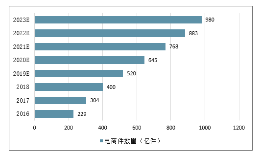 未来5年我国电商件数量有望翻倍(亿件)