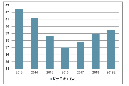 煤炭的运输方式包括铁路、水路和公路,或单方式直达运输,或铁路、公路、水路多式联运。从需求端来说,2017 年我国煤炭需求量为 37.81 亿吨,若假设 2018 年,2019 年的需求量分别以每年3.0%、 1.5%增长,则2019年的总需求量为39.53亿吨, 整体供需逐步宽松,煤价有望走低,火电企业或迎盈利拐点。2013-2019年中国煤炭需求合计走势预测