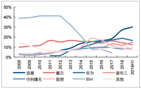 2019年全球服务器行业处于收缩状态,目前行业仍然处于第二轮由云计算拉动的扩张周期,今年的收缩仅仅为第二轮大周期里的阶段性背离,服务器行业短背离大概率已经接近尾声。