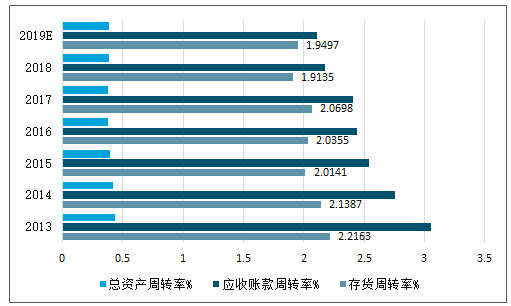 303家上市公司的存货周转率为1.9;应收账款周转率为2.11,为过去6年最低;总资产周转率为0.39,较2018年上半年略有回升。