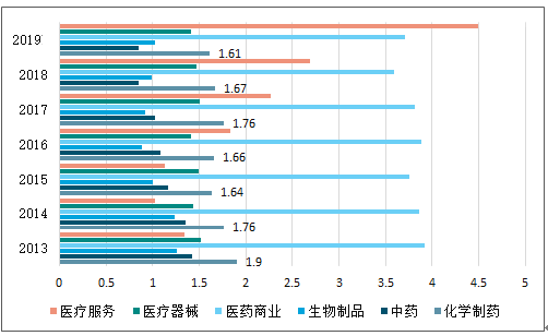 2019上半年生物医药各行业已获利息倍数分析