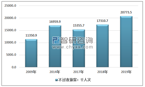 2019年澳门地区入境游旅客数量为39406.2千人次,其中不过夜旅客20773.5千人次,留宿旅客18632.7千人次。