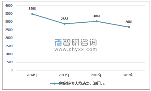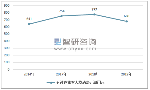 2014-2019年澳门地区不过夜旅客人均消费金额