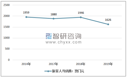 2019年,澳门地区旅客人均消费1626澳门元,其中留宿旅客人均消费2681澳门元,不过夜旅客人均消费680澳门元。