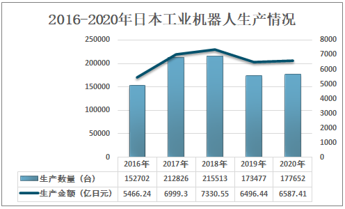 随着日本人口老龄化的不断加重,使得一些低端岗位难以找到合适的工人,需要以机器人代替部分人工,从而推动了工厂机器换人的发展。2020年日本工业机器人生产数量为177652台,较2019年增加了4175台;生产总值为6587.41亿日元,较2019年增加了90.97亿日元。