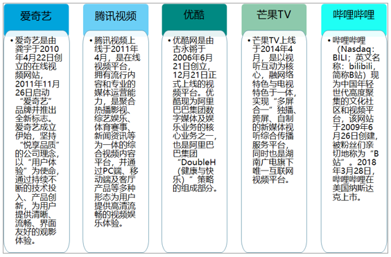中国综合视频平台主要有爱奇艺、腾讯视频、优酷、芒果TV、哔哩哔哩等。